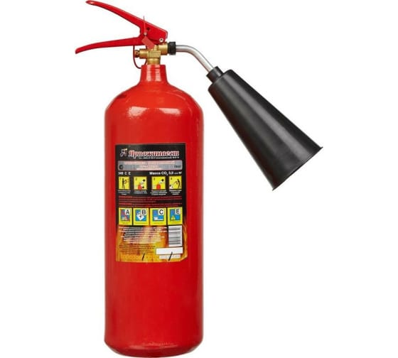Огнетушитель углекислотный Ярпожинвест ОУ-3 ВСЕ – закачной огнетушитель высокого давления с зарядом жидкой двуокиси углерода (ГОСТ 8050-85), находящейся под давлением жидких паров. Применяется для первичного тушения пожаров и возгораний класса B, C, E (горючие и легковоспламеняющиеся жидкости, горючие газы, электроустановки, не превышающие напряжение 10000 Вольт). Основным преимуществом углекислотного огнетушителя является то, что двуокись углерода не повреждает объект тушения и не оставляет следов.