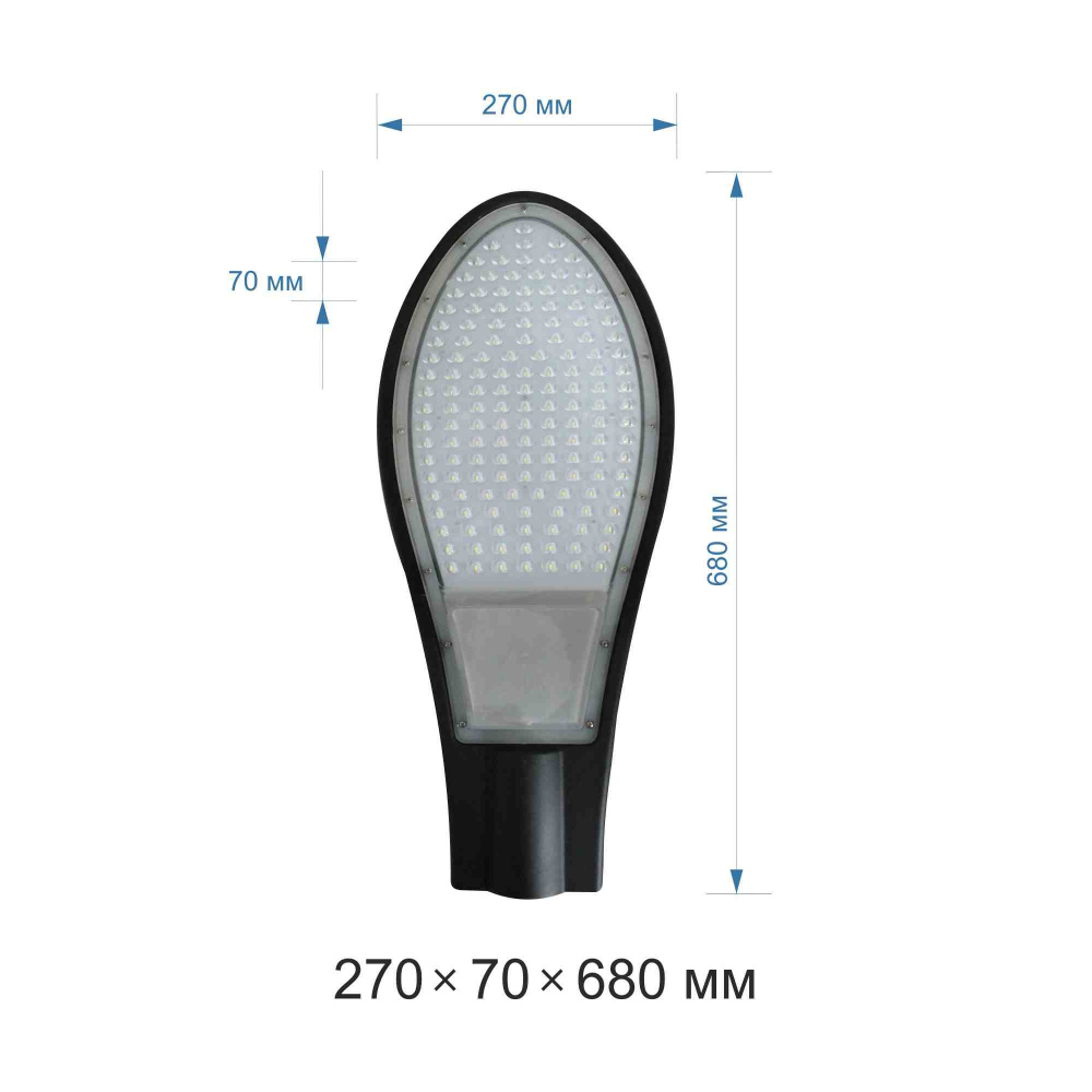 Консольный светодиодный светильник 14-18 излучает световой поток в 12000 Лм, потребляя при этом 150 Вт, что является эквивалентом лампы накаливания 1200 Вт. Он отлично подойдет для освещения дворовых территорий, дорожек в парках и различных уличных площадок размером до 60 м². В светильнике используются светодиоды с дневным белым цветом свечения и цветовой температурой 5500 К, которая близка к естественному солнечному свету и наиболее комфортна для глаз. Корпус светильника имеет мощные ребра охлаждения, изготовлен из алюминиевого сплава с размерами 270х70х680 мм. Рассеиватель изготовлен из поликарбоната, устойчивого к воздействию температур и солнечному свету, сохранит свою прозрачность и качество на протяжении всего срока службы. Благодаря линзам на рассеивателе, которые установлены напротив каждого светодиода, светильник имеет кривую силы света Ш и рассеивает световой поток под углом 75х140°. Рекомендуемая высота установки не менее 6 метров от поверхности земли.